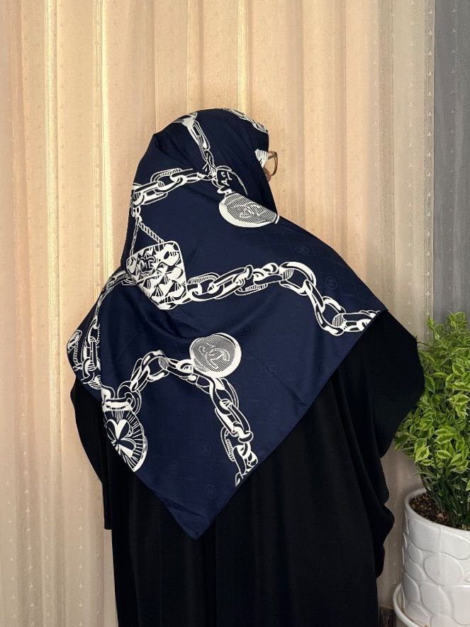 روسری سرمه ای سفید ابریشم ژاکارد وارداتی سایز ۱۴۰ دور دستدوز _کد۱۷۲