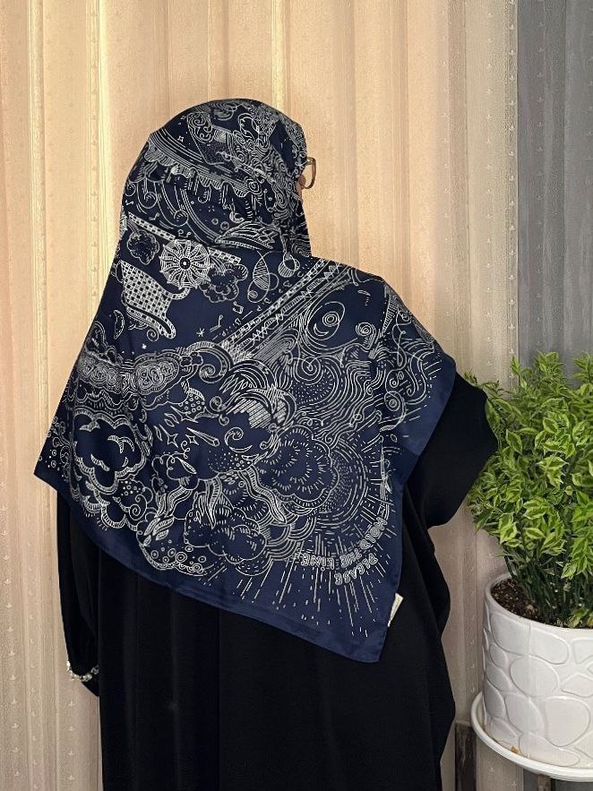 روسری سرمه ای سفید ابریشم ژاکارد وارداتی سایز ۱۴۰ دور دستدوز _کد۱۷۱