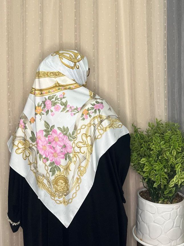 روسری ابریشم ژاکارد وارداتی سایز ۱۴۰ دور دستدوز _کد۱۷۸
