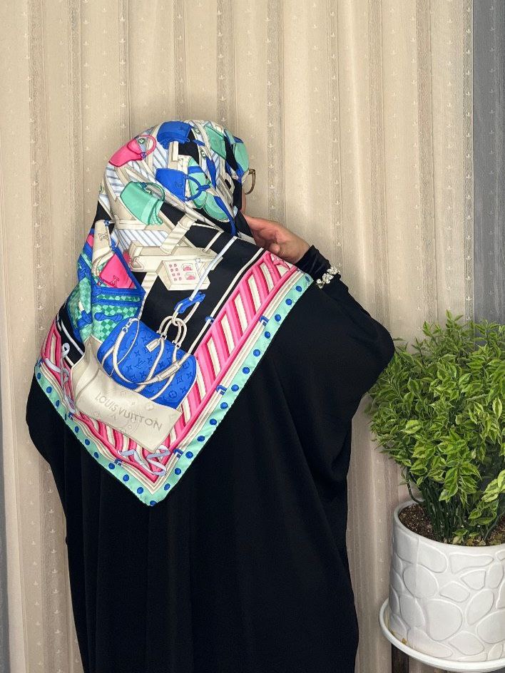 روسری ابریشم تویل وارداتی سایز ۹۰ دوردستدوز – کد ۱۲۴