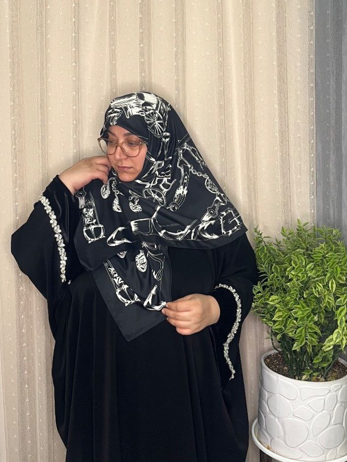 روسری کرپ درجه یک سایز ۱۴۰ نگین کاری با نگین درجه یک _کد۱۸۹