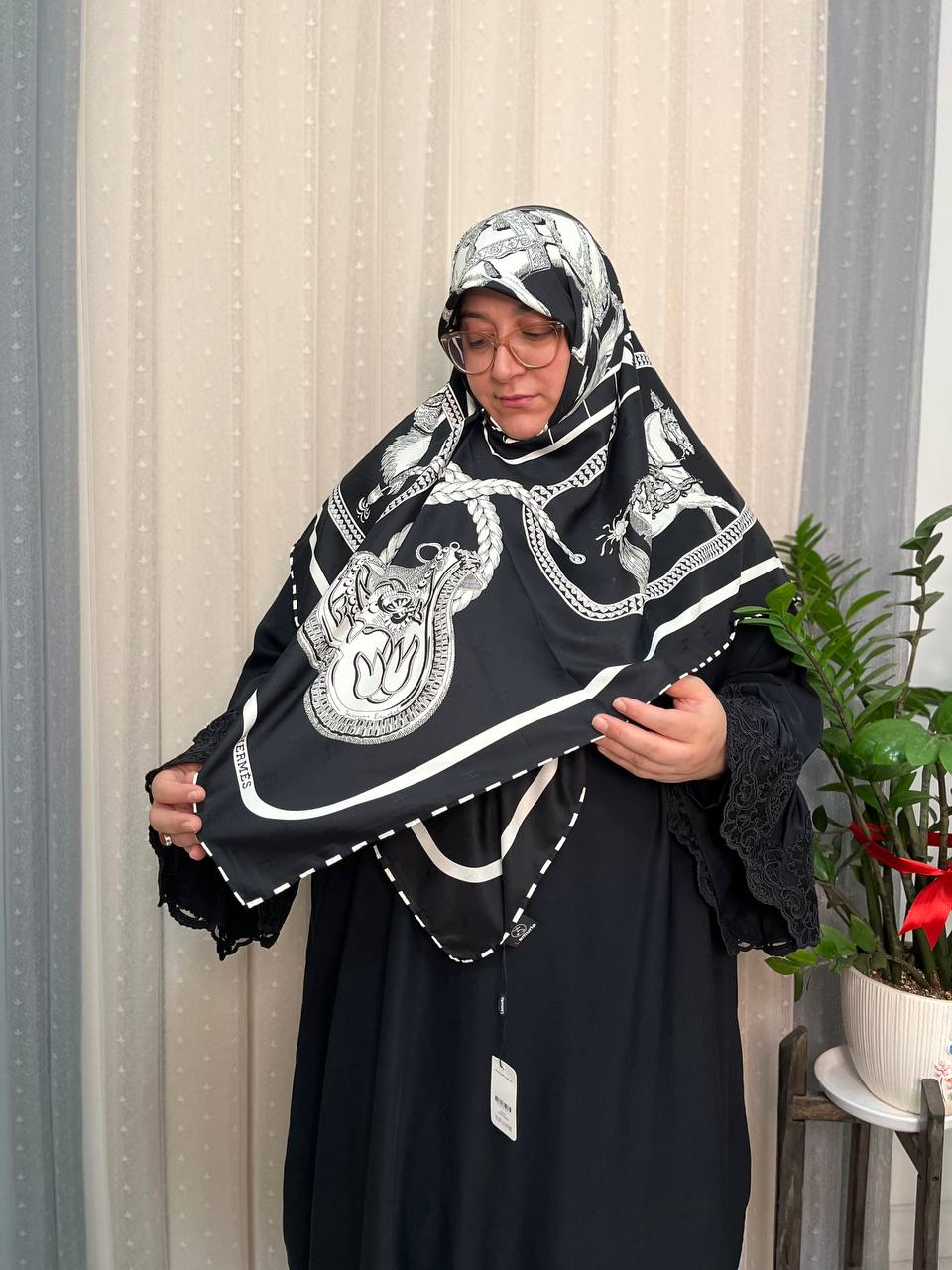 ناموجودروسری سفید مشکی ابریشم ژاکارد طرح هرمس کد(۱۰۲)