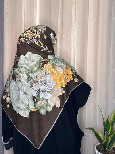 روسری گل گلی ابریشم ژاکارد وارداتی سایز ۱۴۰ دور دستدوز _کد۱۷۶