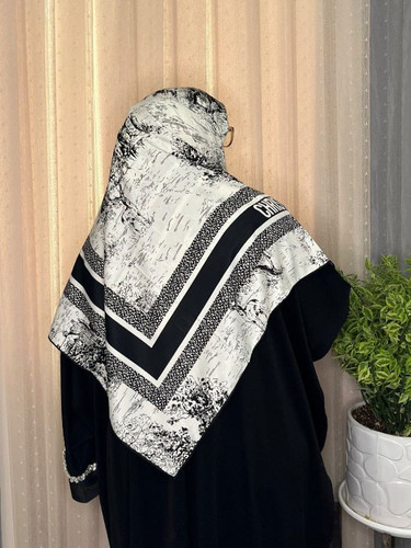 روسری سفید مشکی ابریشم ژاکارد هایکوالیتی وارداتی سایز ۱۲۰ دور دست دوز_کد۱۸۳