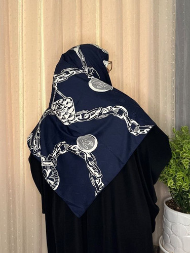 روسری سرمه ای سفید ابریشم ژاکارد وارداتی سایز ۱۴۰ دور دستدوز _کد۱۷۱