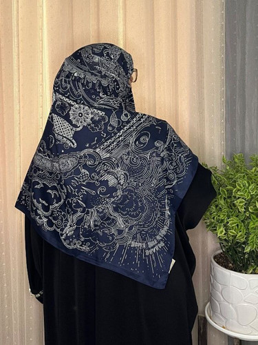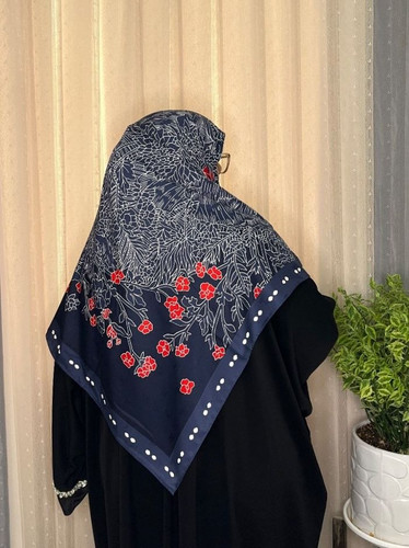 روسری سرمه ای سفید ابریشم ژاکارد وارداتی سایز ۱۴۰ دور دستدوز _کد۱۷۵