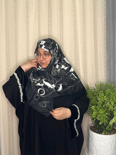 روسری کرپ درجه یک سایز ۱۴۰ نگین کاری با نگین درجه یک _کد۱۸۹