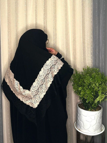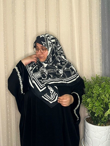 روسری کرپ دانتل دوزی و نگین کاری سایز ۱۴۰ _کد۱۹۰