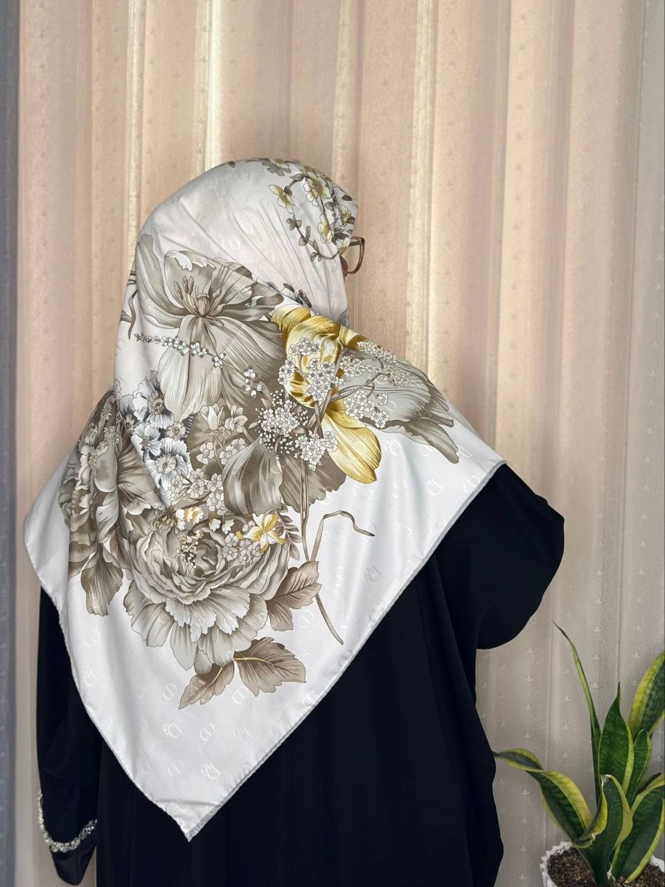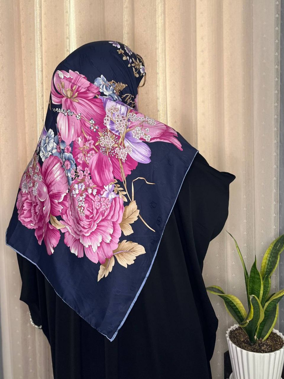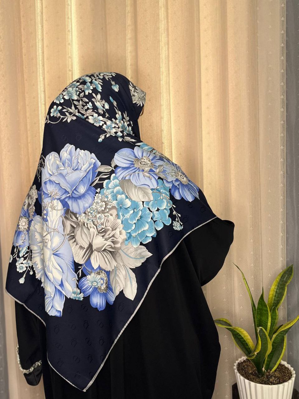 روسری ابریشم ژاکارد هایکوالیتی وارداتی سایز ۱۴۰ دور دست دوز_کد۱۶۱