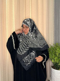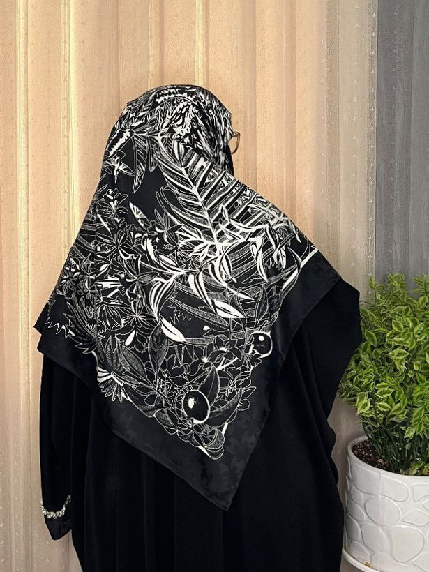 روسری سفید مشکی ابریشم ژاکارد وارداتی سایز ۱۴۰ دور دستدوز _کد۱۶۶