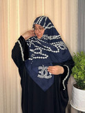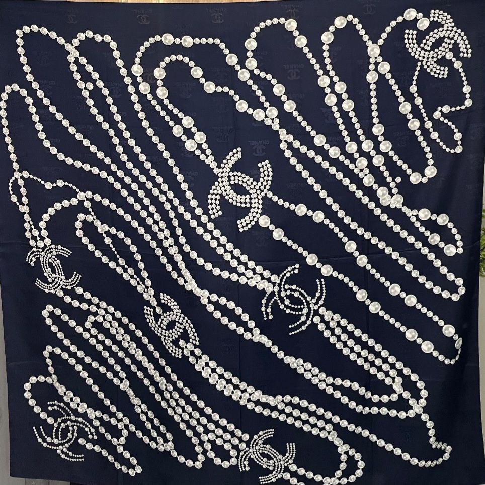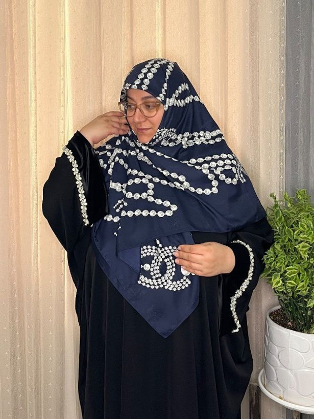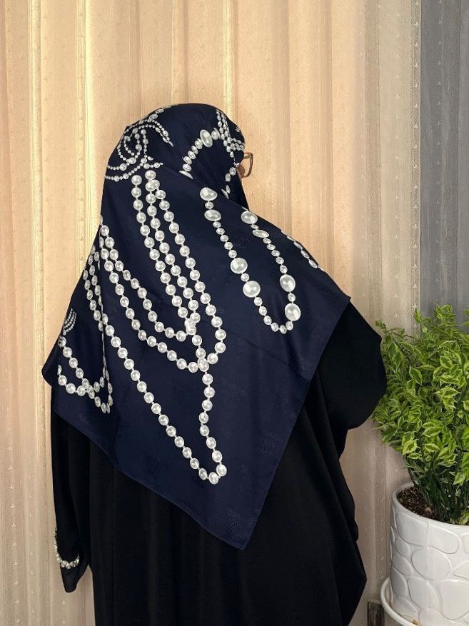 روسری سرمه ای سفید ابریشم ژاکارد وارداتی سایز ۱۴۰ دور دستدوز _کد۱۷۵