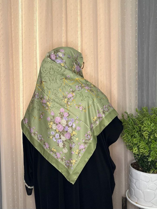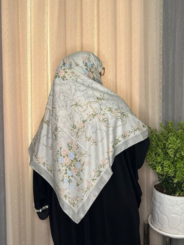 روسری گل گلی ابریشم ژاکارد وارداتی سایز ۱۴۰ دور دست‌دوز _کد۱۷۶