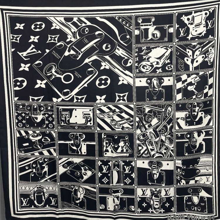 روسری سفید مشکی ابریشم ژاکارد هایکوالیتی وارداتی سایز ۱۲۰ دور دست دوز_کد۱۸۴