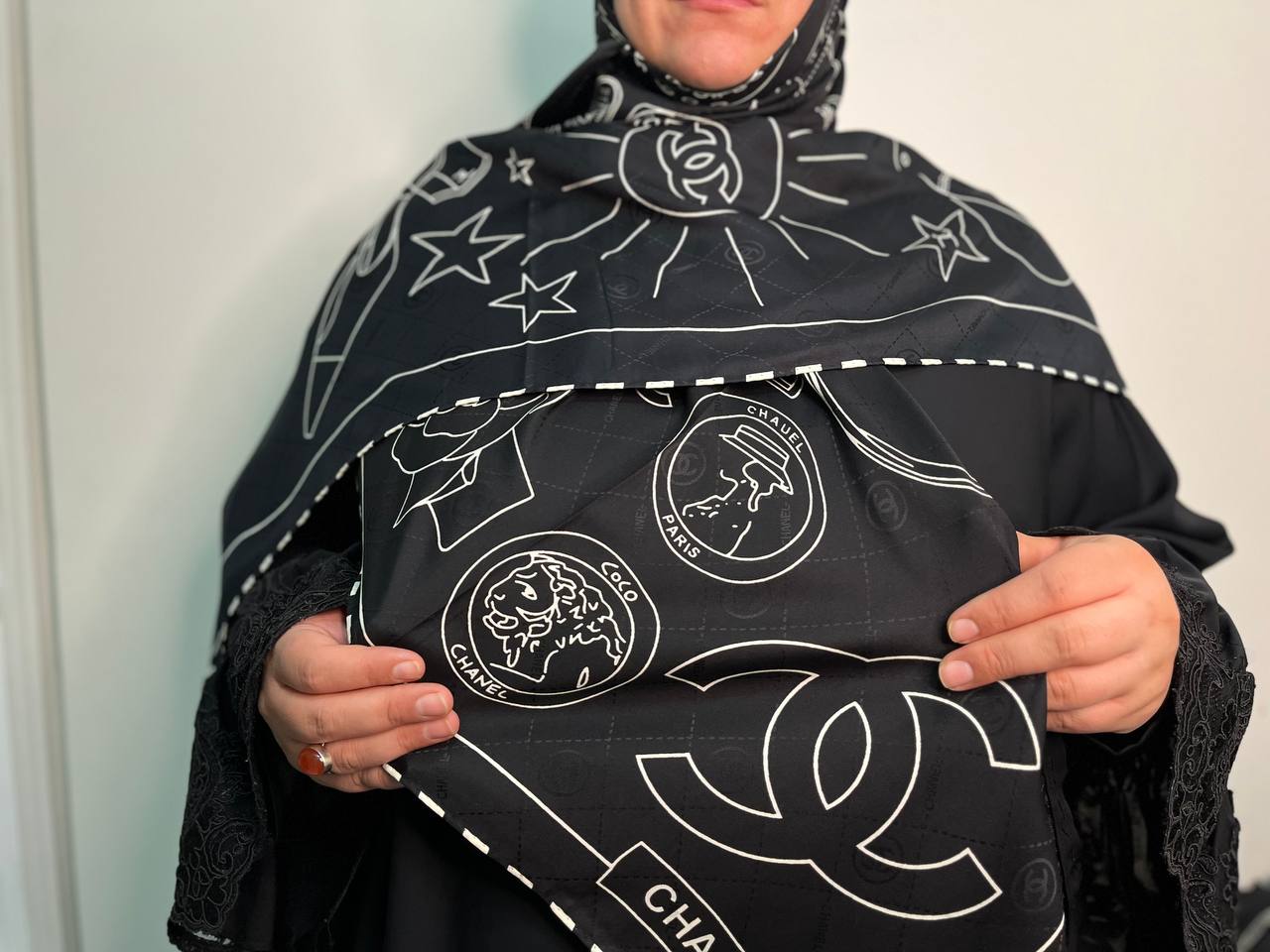 روسری سفید مشکی ابریشم ژاکارد کد (۱۰۳)