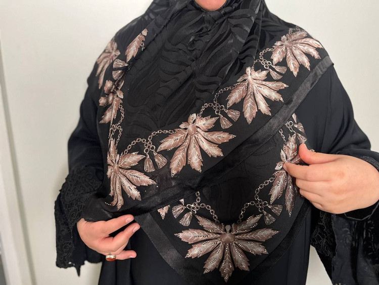 روسری دووره کاردیون ترک سایز ۱۲۰ نگین کاری شده کد (115)