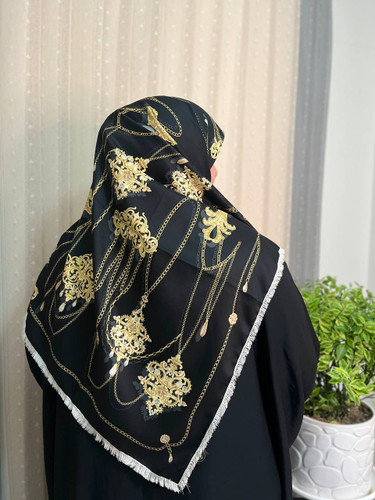 روسری ژاکارد ترک طرح مارک جنس عالی نخ کش نمیشه اصلا پرز نمیده دور دوخت سایز ۱۴۰ _کد ۱۳۲