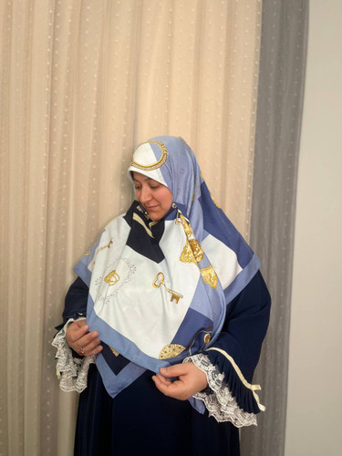 روسری از برند روزا بلا ترک سایز ۱۴۰ دور دست دوز کد (106)
