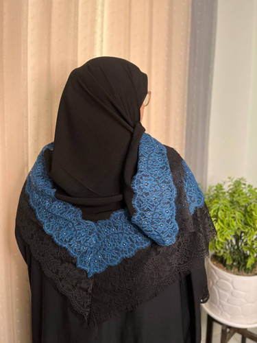روسری کرپ دانتل دار نگینکاری سایز 140 | جنس عالی – کد۱۳۴