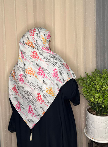 روسری نخی اسپان سایز ۱۴۰ دور دوخت کیفیت عالی منگوله دار-کد۱۴۹