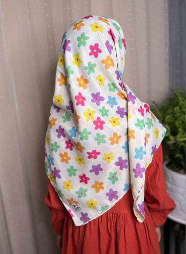 روسری نخی اسپان دخترانه سایز ۱۲۰ دور دوخت کیفیت عالی منگوله دار _ کد۱۵۹