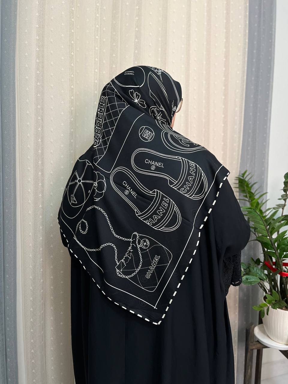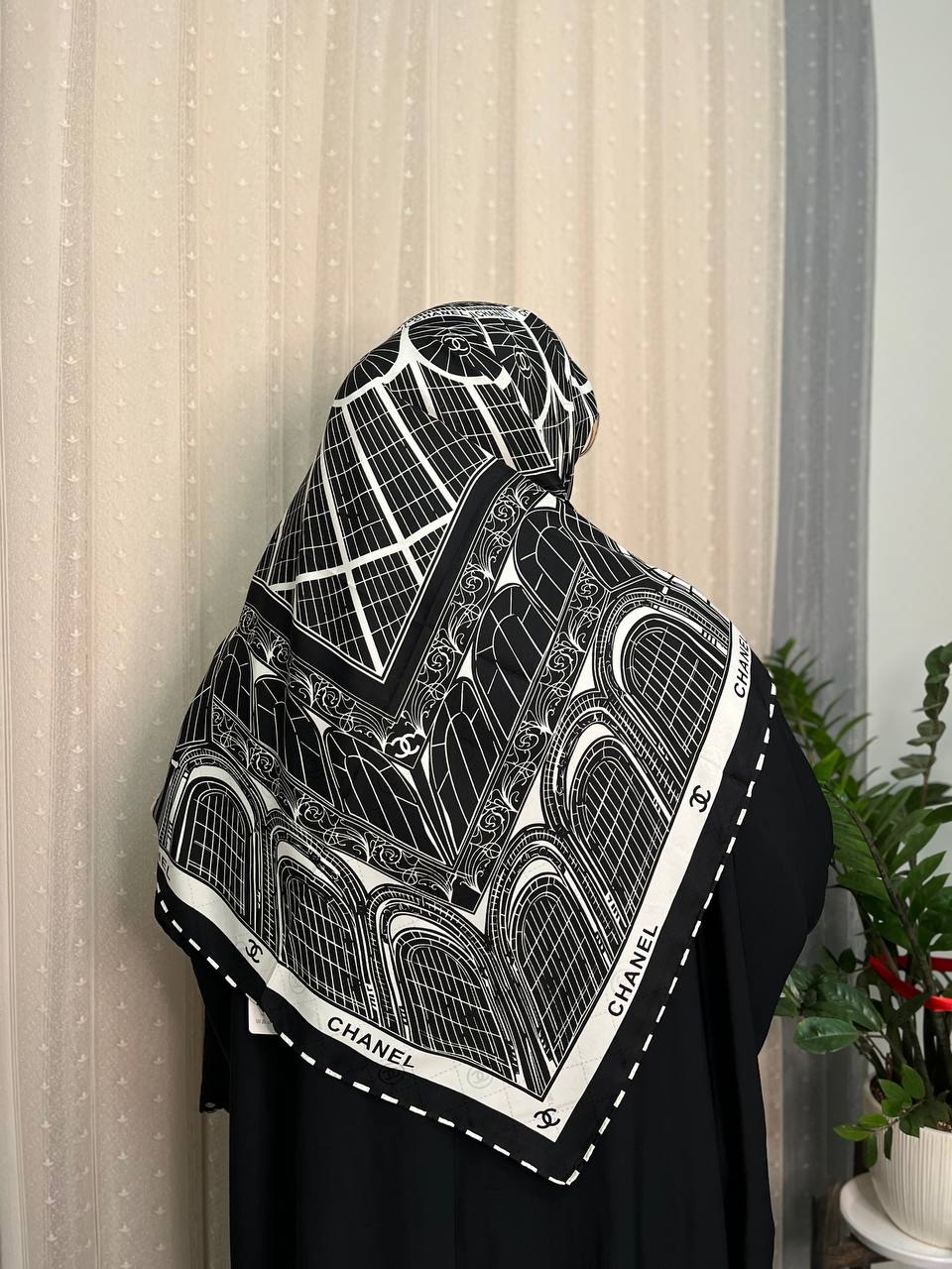 روسری سفید مشکی ابریشم ژاکارد وارداتی کد (105)